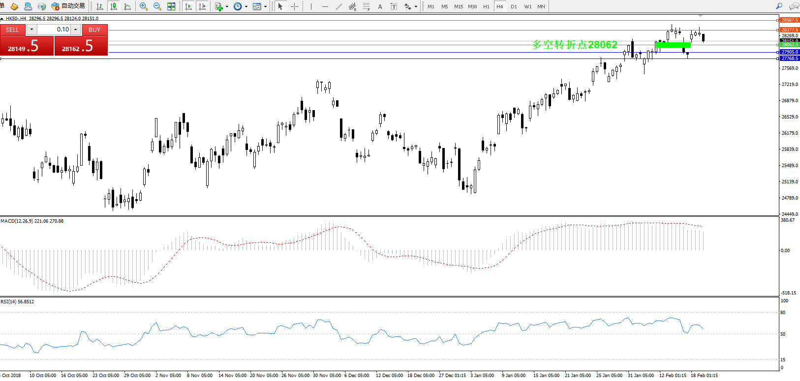 恒指HK50 ——4小时K线图显示: