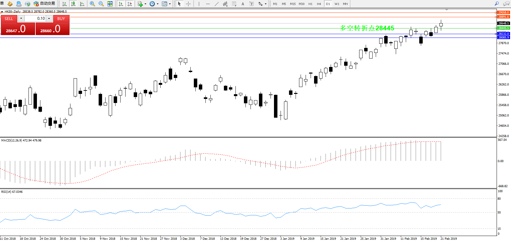 商务部新闻发言人高峰今天下午在例行发布会上透露,目前中美双方工作层已于19日开始工作,高级别磋商将于21-22日在华盛顿举行。双方将在上一次高级别磋商基础上,就有关经贸问题进一步深入沟通。双方经贸团队如此密集磋商,目的是按照两国元首共识努力达成一致。至于磋商具体进展程度,要等到磋商结束后进一步发布。香港恒生指数早盘低开高走,但也于午后跳水,一度短暂转跌,不过于尾盘小幅回升,截至收盘涨0.41%,报28629.92点。