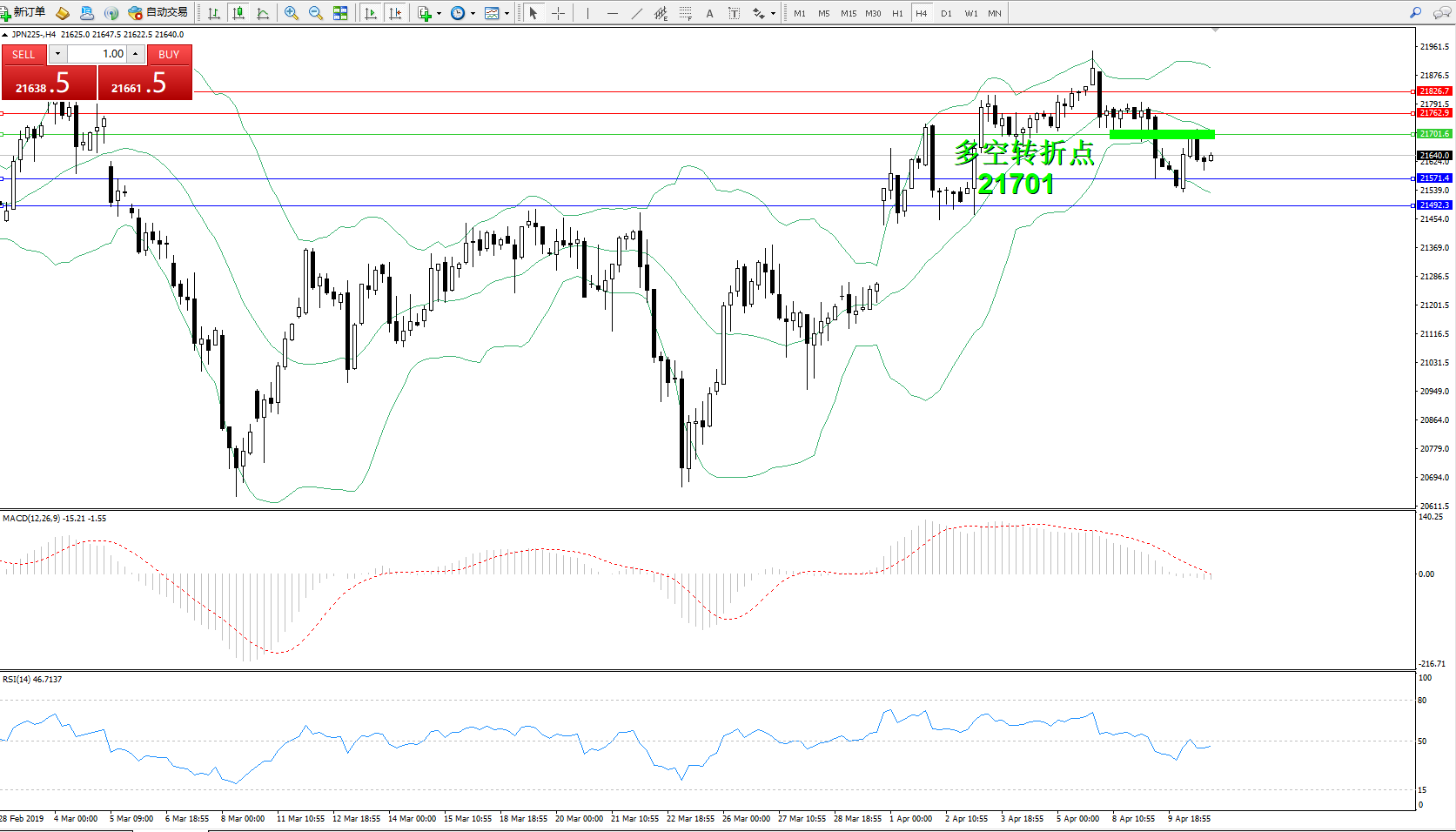 技术点评:多头上行动力减弱,空头伺机下行,且短期受布林带中轨附近压制,有继续下行态势,MACD指标处于0轴下方徘徊,RSI指标50均衡线下方震荡;
