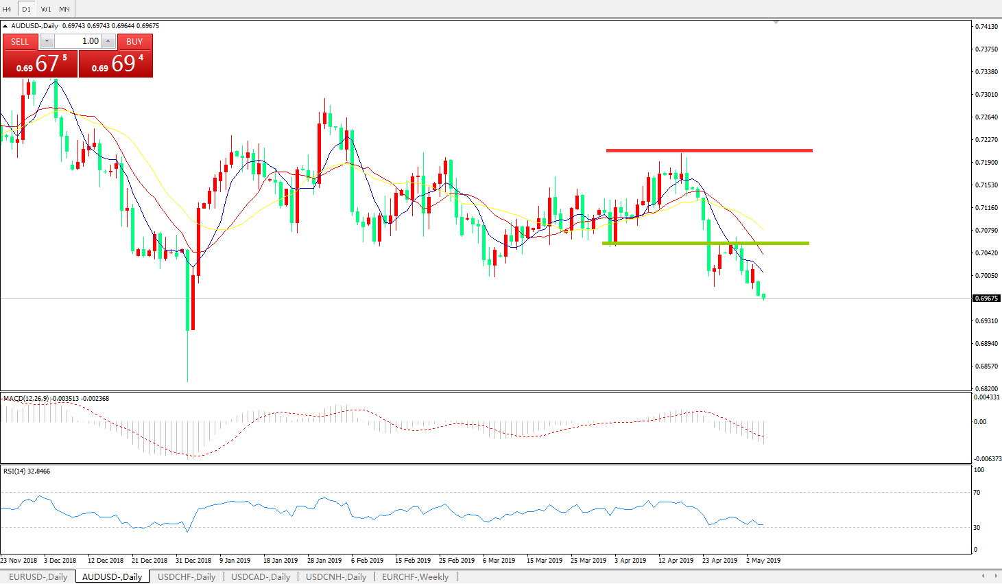 交易策略:在0.7110之下,看跌,目标价位为0.7000,然后为0.6920。
