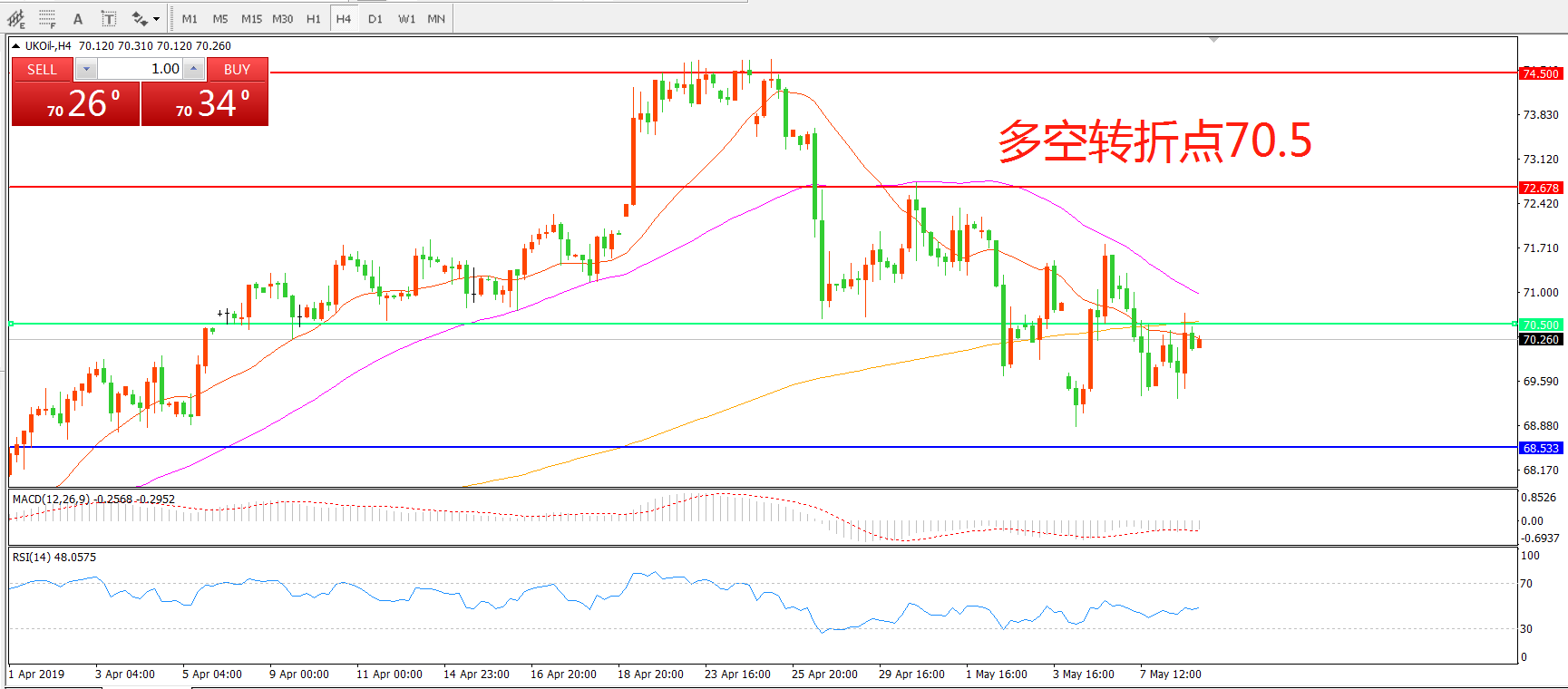 交易策略:在70.50之下看跌,目标68.50    66.00