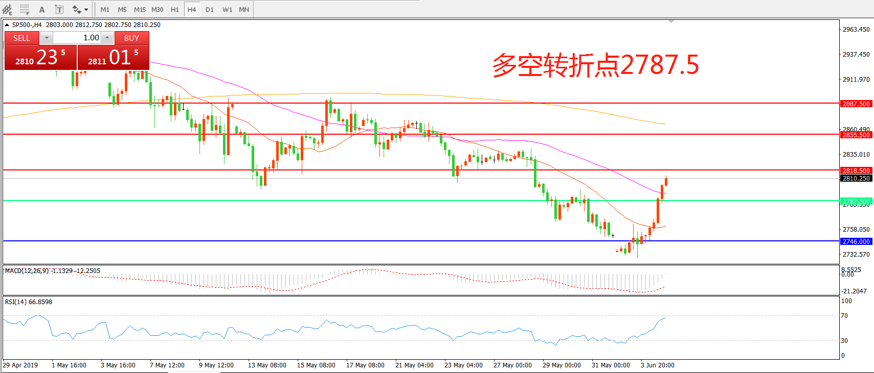 多空转折点:2787.50