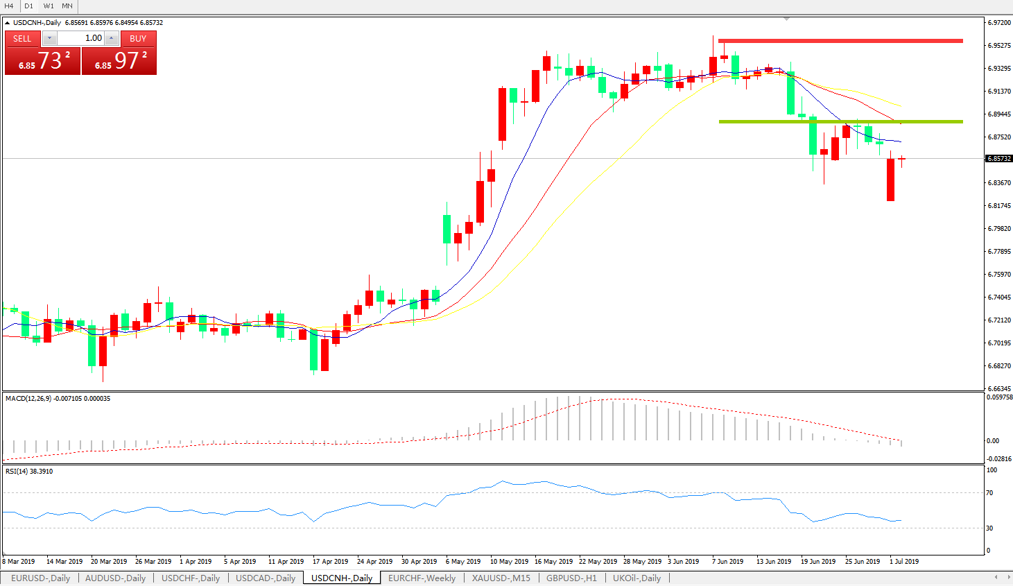 备选策略: 在6.8880之上,看涨,目标价位为6.9600,然后为6.9800。