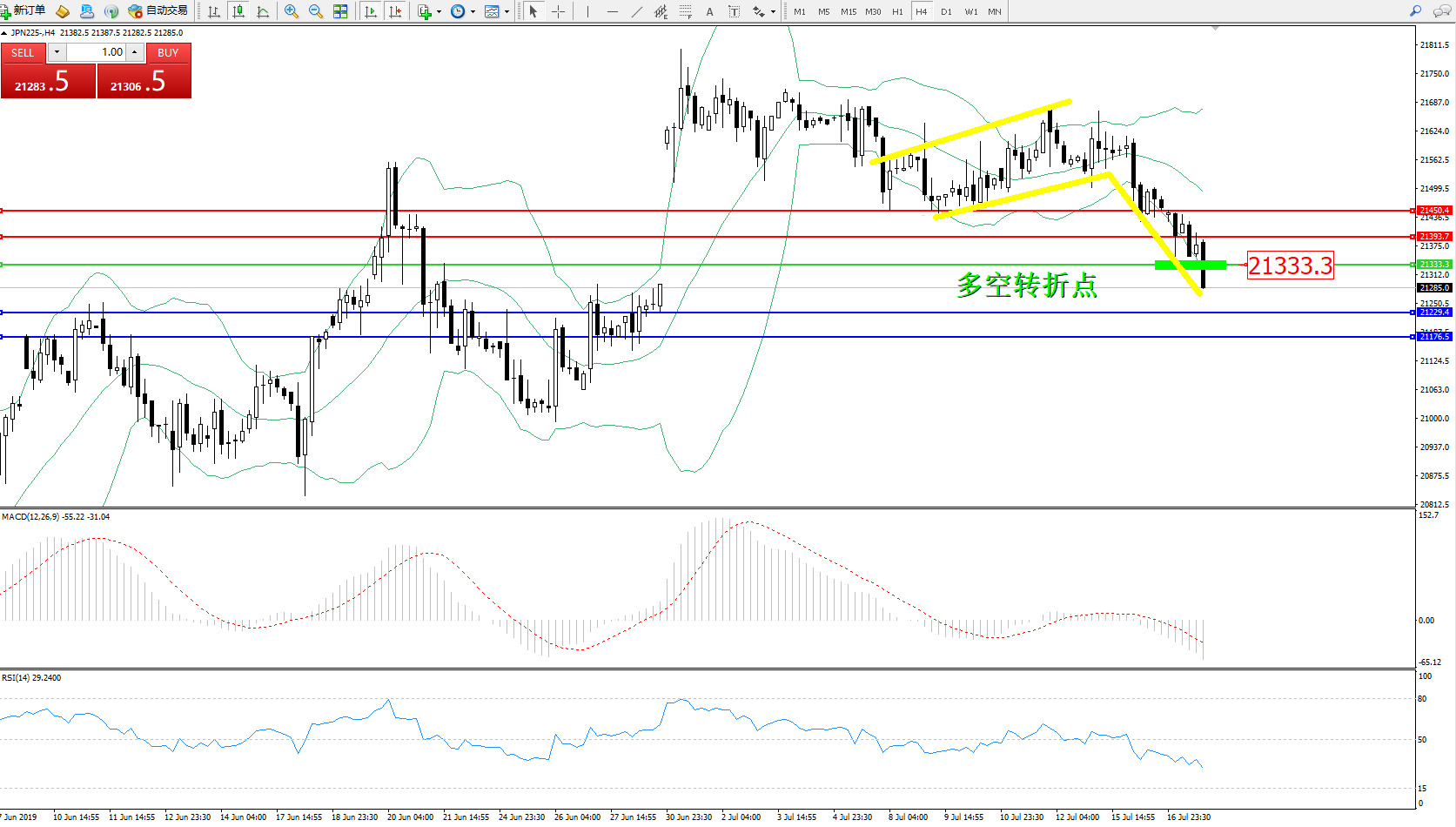 技术点评:高位震荡数日后开始下行,虽有短期上行通道提振上移,但再次跌破布林带下轨且延续下轨继续下探中,MACD指标跌破0轴线后继续下行,RSI指标空头区域震荡下移;