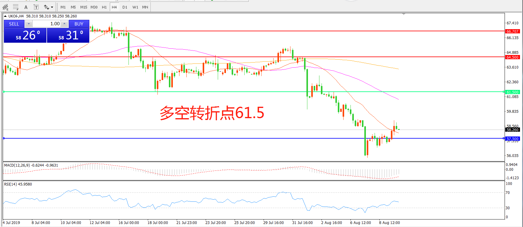 交易策略:在61.50之下看跌,目标57.50   53.00