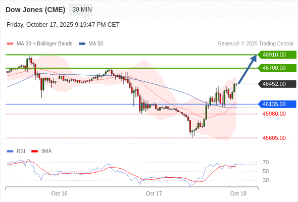 在 46135.00 之上,看涨,目标价位为 46700.00 ,然后为 46910.00 。