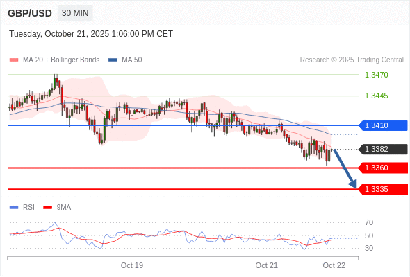 在 1.3410 之下,看跌,目标价位为 1.3360 ,然后为 1.3335 。