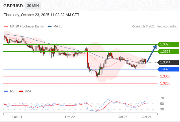 在 1.3325 之上,看涨,目标价位为 1.3375 ,然后为 1.3395 。