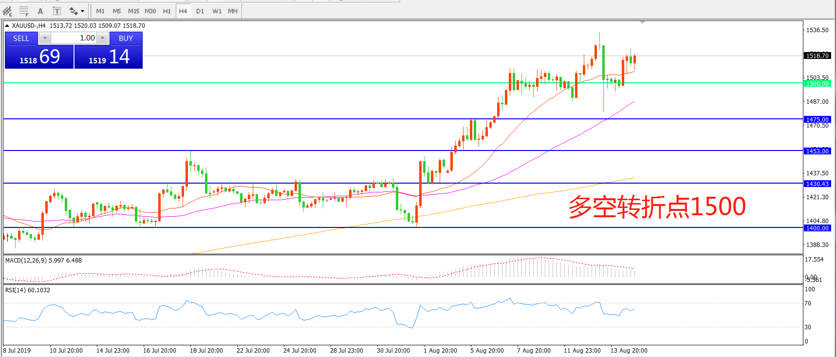 交易策略:在1500.00之上看涨,目标1530.00 1565.00