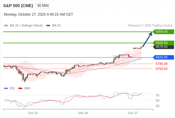 在 6824.00 之上,看涨,目标价位为 6900.00 ,然后为 6959.00 。