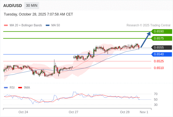 在 0.6540 之上,看涨,目标价位为 0.6575 ,然后为 0.6590 。