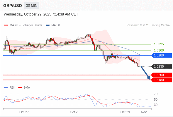 在 1.3280 之下,看跌,目标价位为 1.3200 ,然后为 1.3180 。