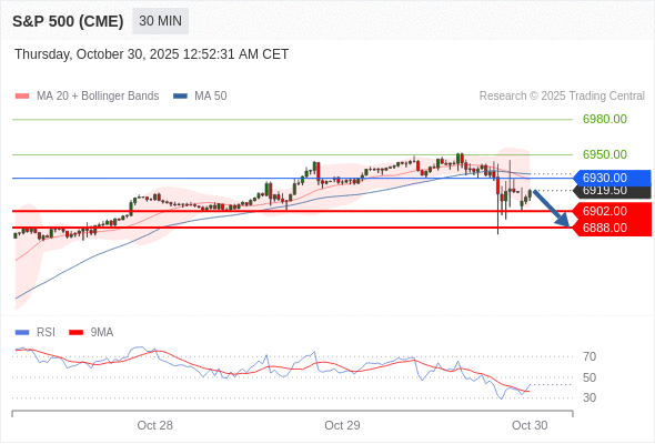 交易策略: 在 6930.00 之下,看跌,目标价位为 6902.00 ,然后为 6888.00 。