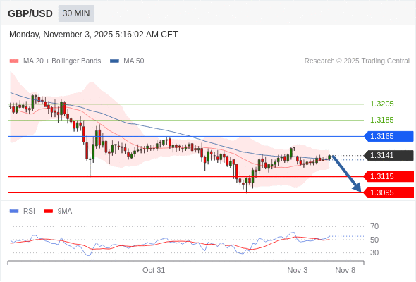 在 1.3165 之下,看跌,目标价位为 1.3115 ,然后为 1.3095 。