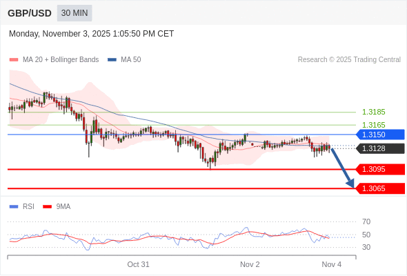 在 1.3150 之下,看跌,目标价位为 1.3095 ,然后为 1.3065 。