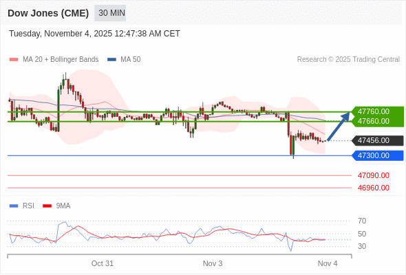 在 47300.00 之上,看涨,目标价位为 47660.00 ,然后为 47760.00 。