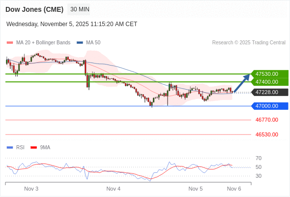 在 47000.00 之上,看涨,目标价位为 47400.00 ,然后为 47530.00 。