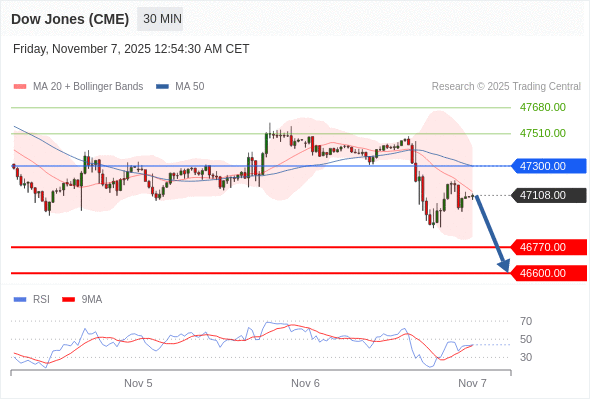 在 47300.00 之下,看跌,目标价位为 46770.00 ,然后为 46600.00 。
