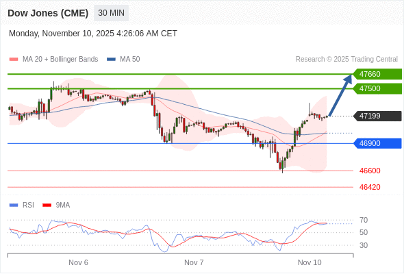 在 46900 之上,看涨,目标价位为 47500 ,然后为 47660 。
