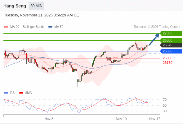 在 26500 之上,看涨,目标价位为 26800 ,然后为 27000 。