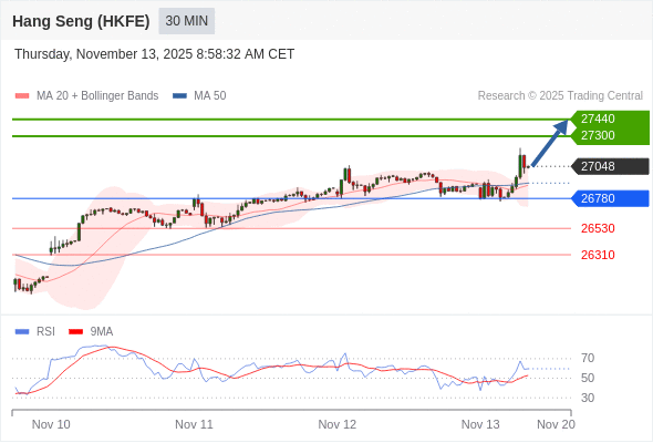 在 26780 之上,看涨,目标价位为 27300 ,然后为 27440 。