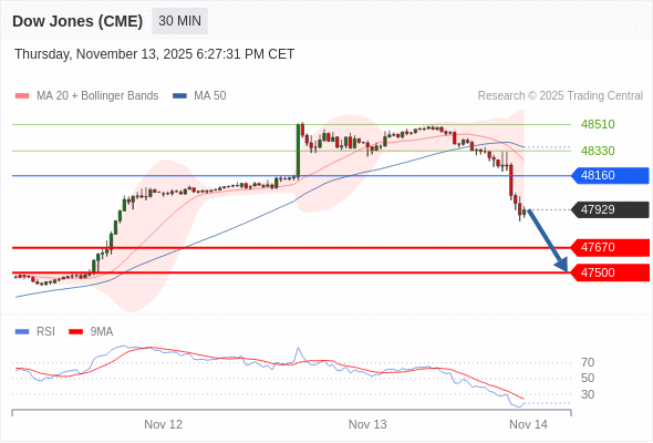 在 48160 之下,看跌,目标价位为 47670 ,然后为 47500 。