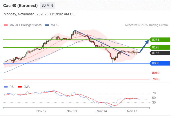 法国CAC指数期货 (Euronext) (X5) 当日内: 期待8195。
