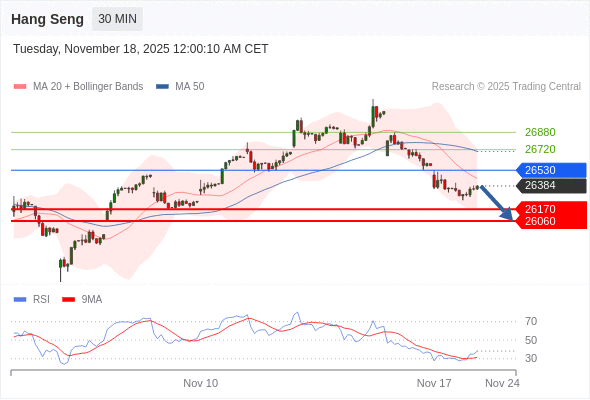 恒生指数 当日内: 短期关键阻力位在26530。