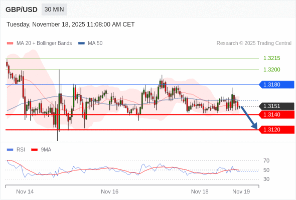 交易策略: 在 1.3180 之下,看跌,目标价位为 1.3140 ,然后为 1.3120 。