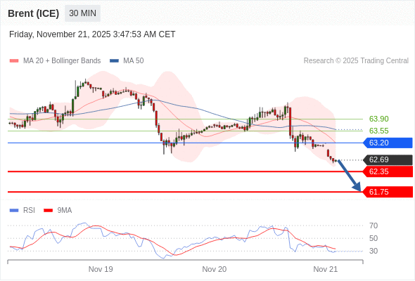在 63.20 之下,看跌,目标价位为 62.35 ,然后为 61.75 。