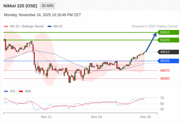 在 49155 之上,看涨,目标价位为 50220 ,然后为 50610 。