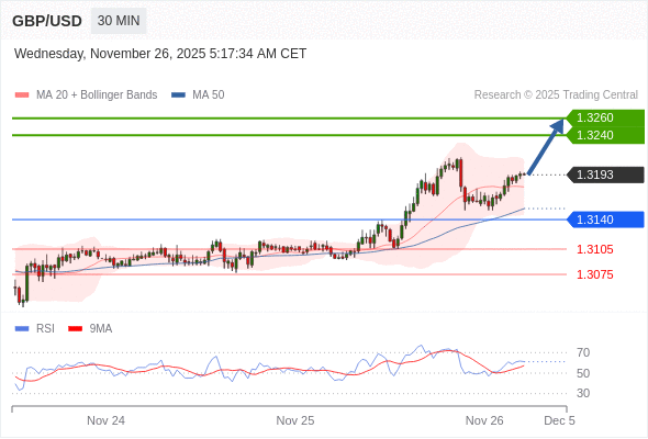 在 1.3140 之上,看涨,目标价位为 1.3240 ,然后为 1.3260 。