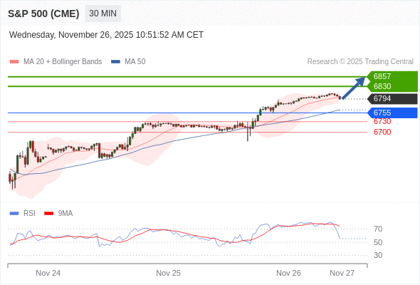 在 6755 之上,看涨,目标价位为 6830 ,然后为 6857 。