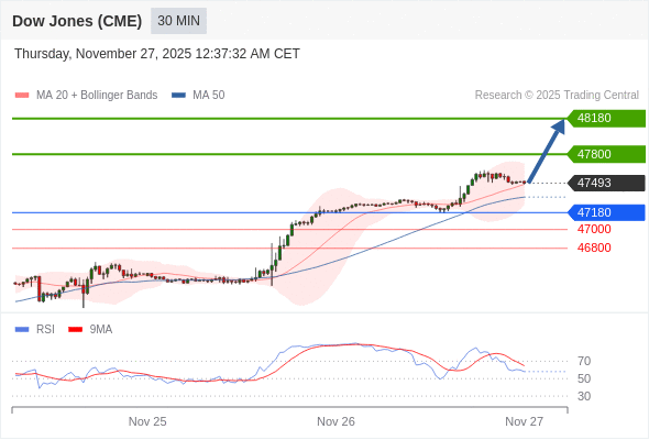 在 47180 之上,看涨,目标价位为 47800 ,然后为 48180 。
