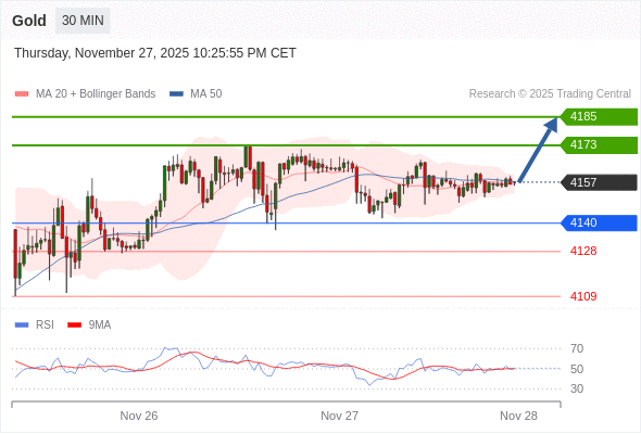 在 4140 之上,看涨,目标价位为 4173 ,然后为 4185 。