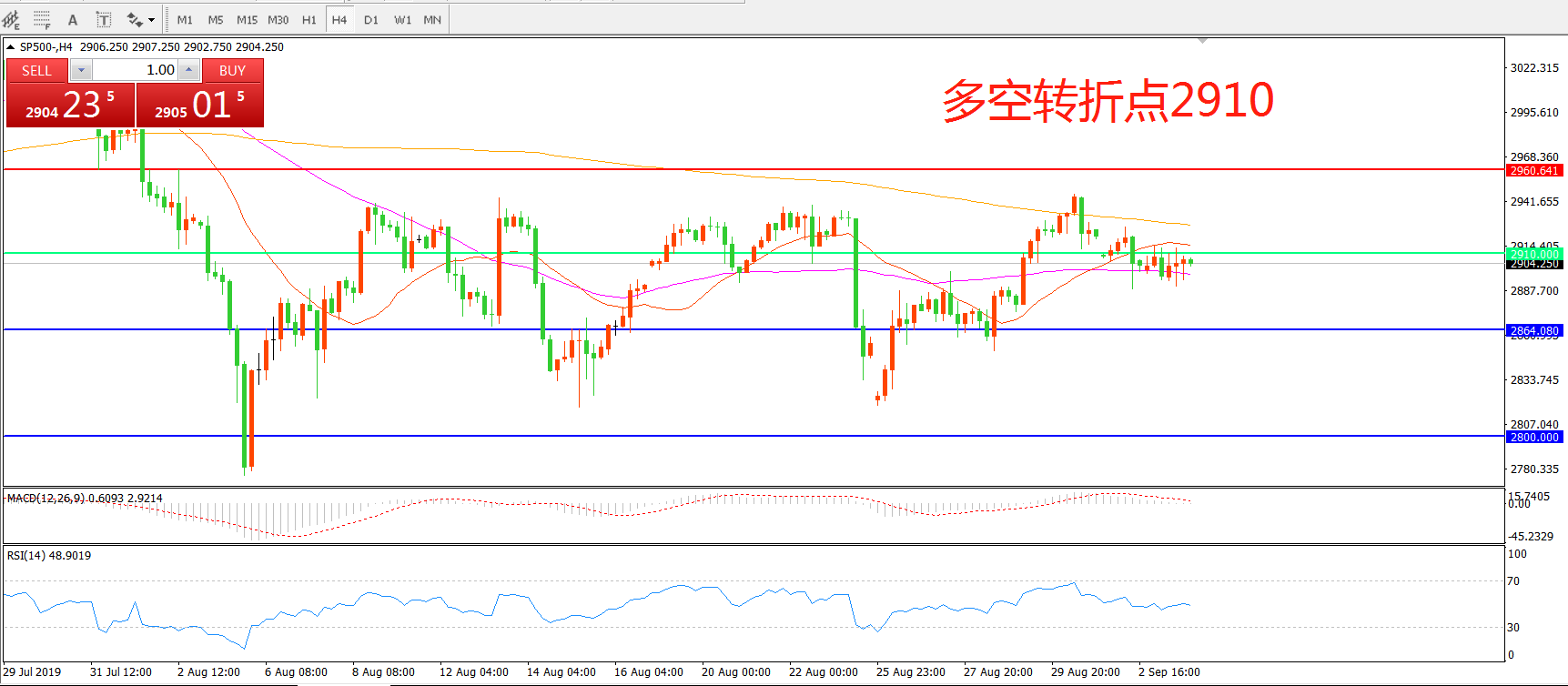 交易策略:在2910.00之下看跌,目标2864.00     2800.00