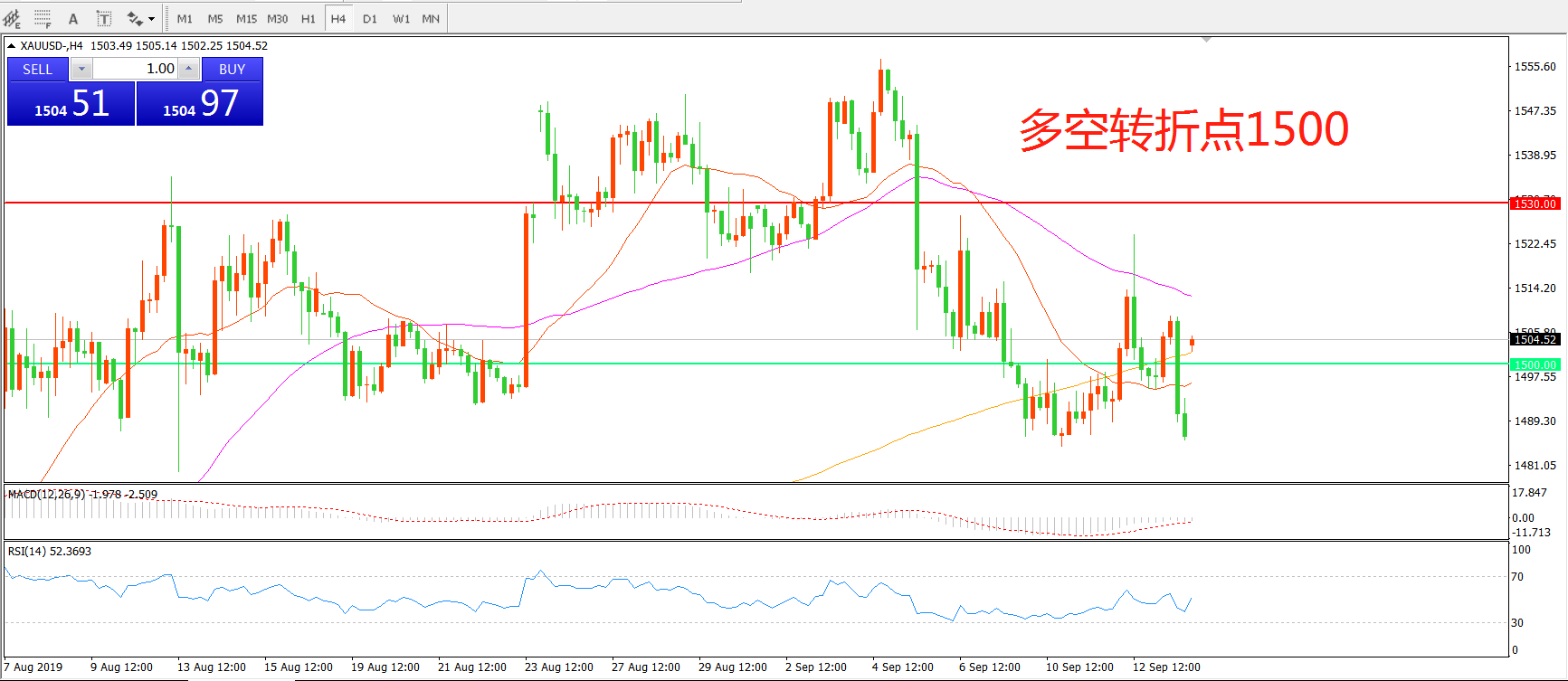 周六沙特最大原油设施遭无人机袭击,由于受影响的产油量占沙特当前产油量的一半,沙特的石油产出和出口均中断,这一消息瞬间引爆全球市场,美油布油跳空高开13%以上,创下30年以来最大单日涨幅,避险情绪推升金价跳空高开逾1%,现报1504.64美元/盎司。本周市场最重磅的消息无疑是周四的美联储利率决议,在欧央行“火力全开”的背景下,鲍威尔是否继续降息成为市场关注的焦点。