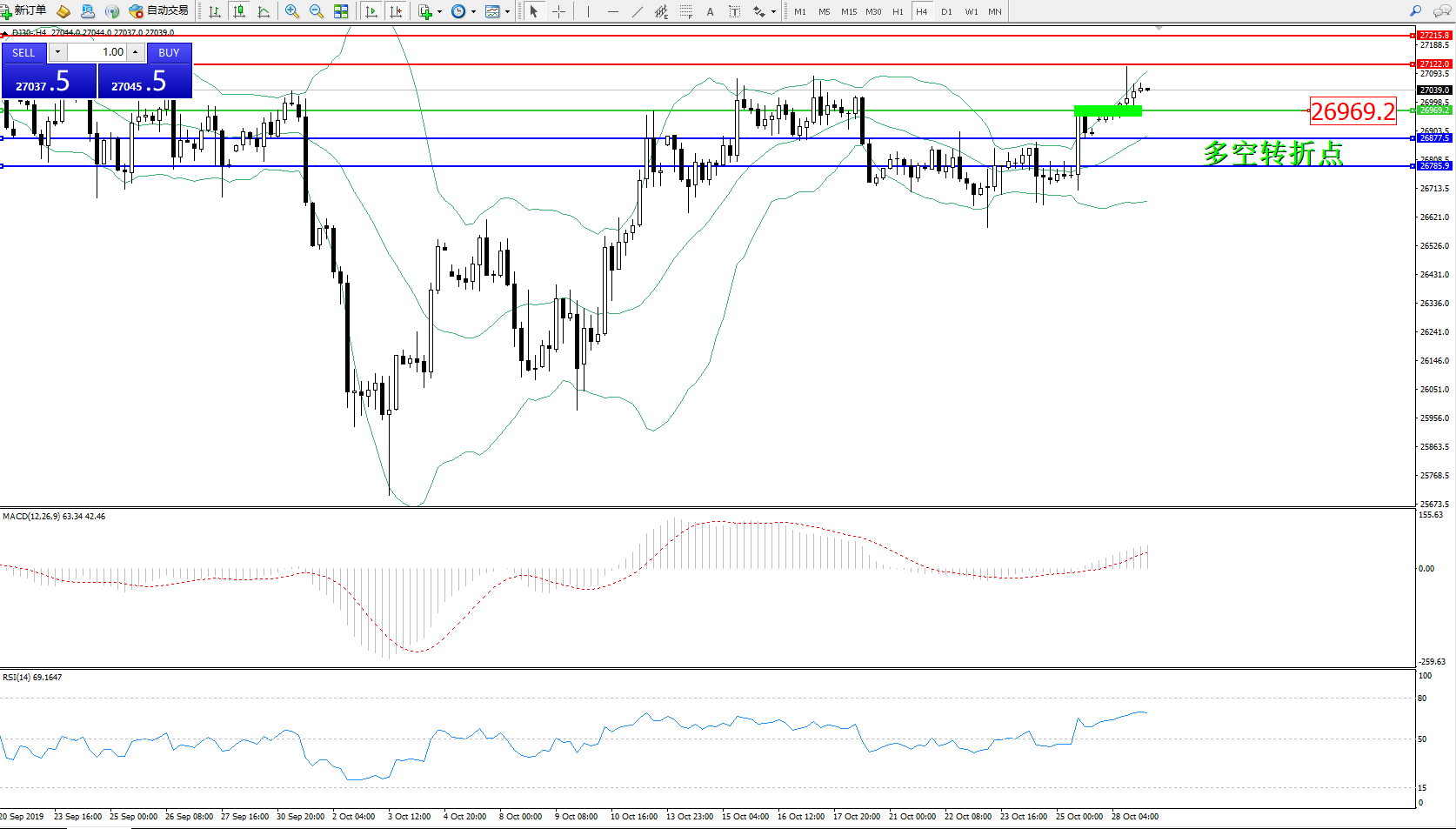 道琼斯指数10月28日(周一)收盘上涨132.70点,涨幅0.49%,报27090.72点。受贸易乐观消息提振,且投资者预期美联储将于本周晚些时候宣布降息。科技巨头微软攀升2.46%,为三大股指中涨幅最大的个股之一。在财报季结束及美联储会议结束后,人们将关注贸易消息,第三季度财报季部分缓解了对贸易紧张局势给企业盈利带来影响的担忧,迄今有204家标普500指数成份股企业发布了业绩,其中逾78%的获利好于预期。