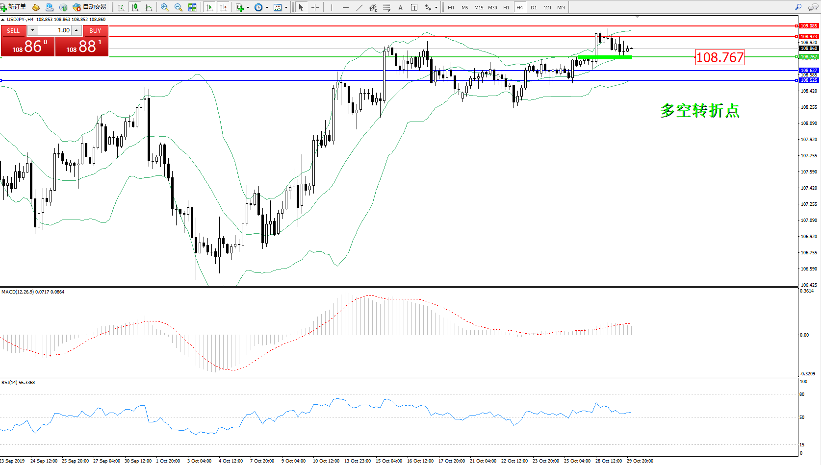 交易策略:108.767上方看涨,目标108.973109.085