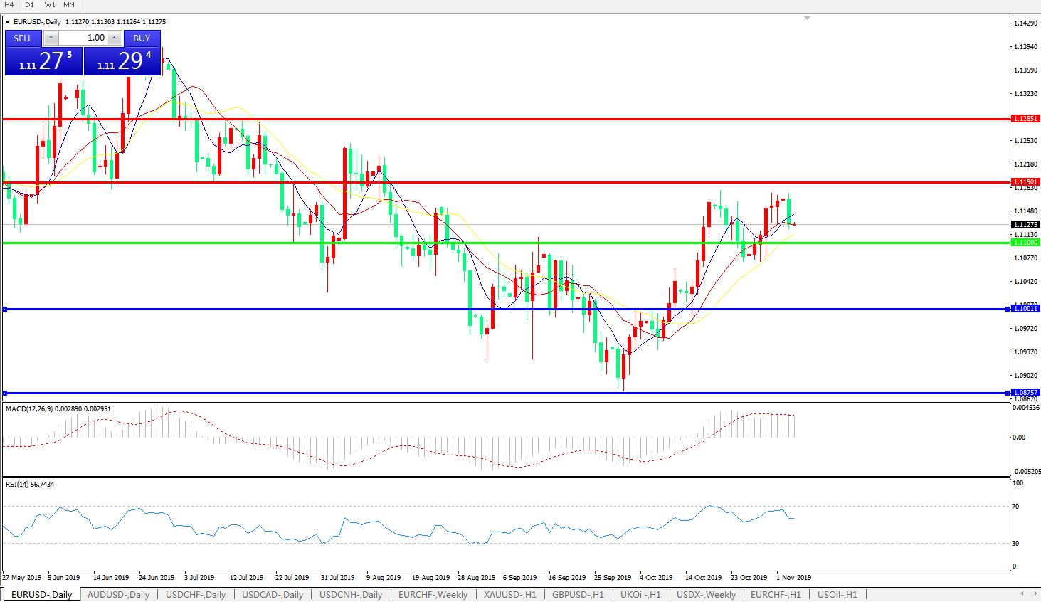 交易策略:1.1100上方看涨,目标1.1190、1.1280