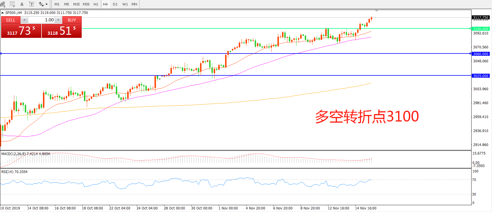 中美贸易协议取得进展的积极前景提振了市场情绪;各项数据显示美国经济增长依然可持续,上周五(11月15日)美股三大股指均再创历史新高,标普500指数涨0.77%,报3116.23点,录得今年第21个收盘新高纪录。根据统计,标普500指数成分股中有超过90%的企业已经披露了最近一个财季的业绩报告,在已公布业绩的企业中,约75%的企业盈利超出预期,近60%的企业销售额好于预期,良好的业绩是推动美股上涨的重要原因。