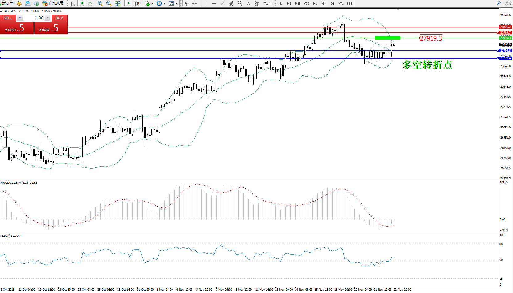 道琼斯指数1122日(周五)收盘上涨109.30点,涨幅0.39%,报27875.62点。美国公布的采购经理指数初值和消费者信心数据超过预期,而英国和欧洲部分地区的类似数据则表现不如美国。一周的消息喜忧参半,抑制了波动性,并将股票维持在距离历史高点不到1%的窄幅范围内。富时罗素表示,股市短期依然看贸易谈判,鉴于这方面没有什么实质性内容,所以不奇怪股市窄幅波动、波动率处于多月低点。