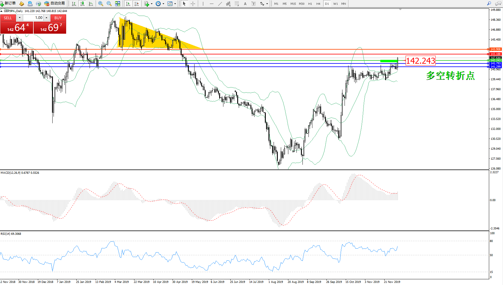 交易策略:142.243上方看涨,目标143.188143.908