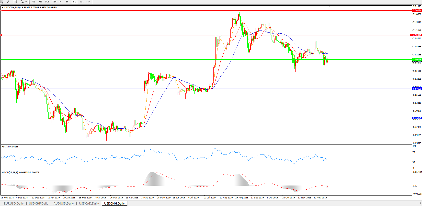 交易策略: 在7.0000之下,看跌,目标价位为6.8805,然后为6.7600。