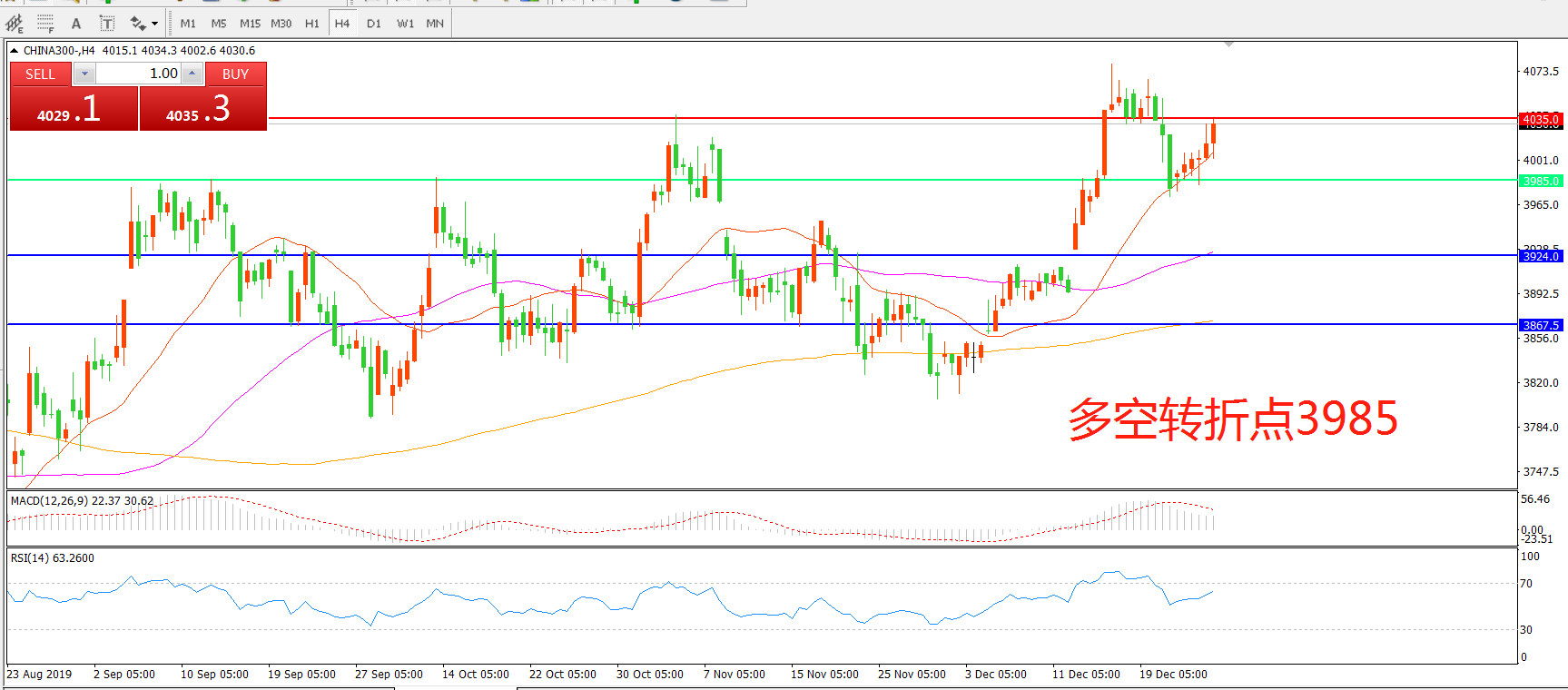 多空转折点:3985.00