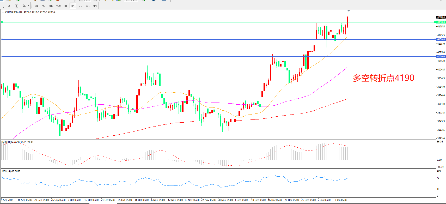 周一(1月13日),A股三大指数先抑后扬,整体上显示出十足的韧性,,盘初惯性下探之后逐步回升,午后科技股再度发力,三大股指均创反弹以来新高,沪深300震荡走高,收报4208.4点。元旦以来,降准、养老金入市、银行理财子公司利好频频,而北上资金的持续流入也从侧面证明了中国优质资产的低估状态,短期有进一步上行可能。