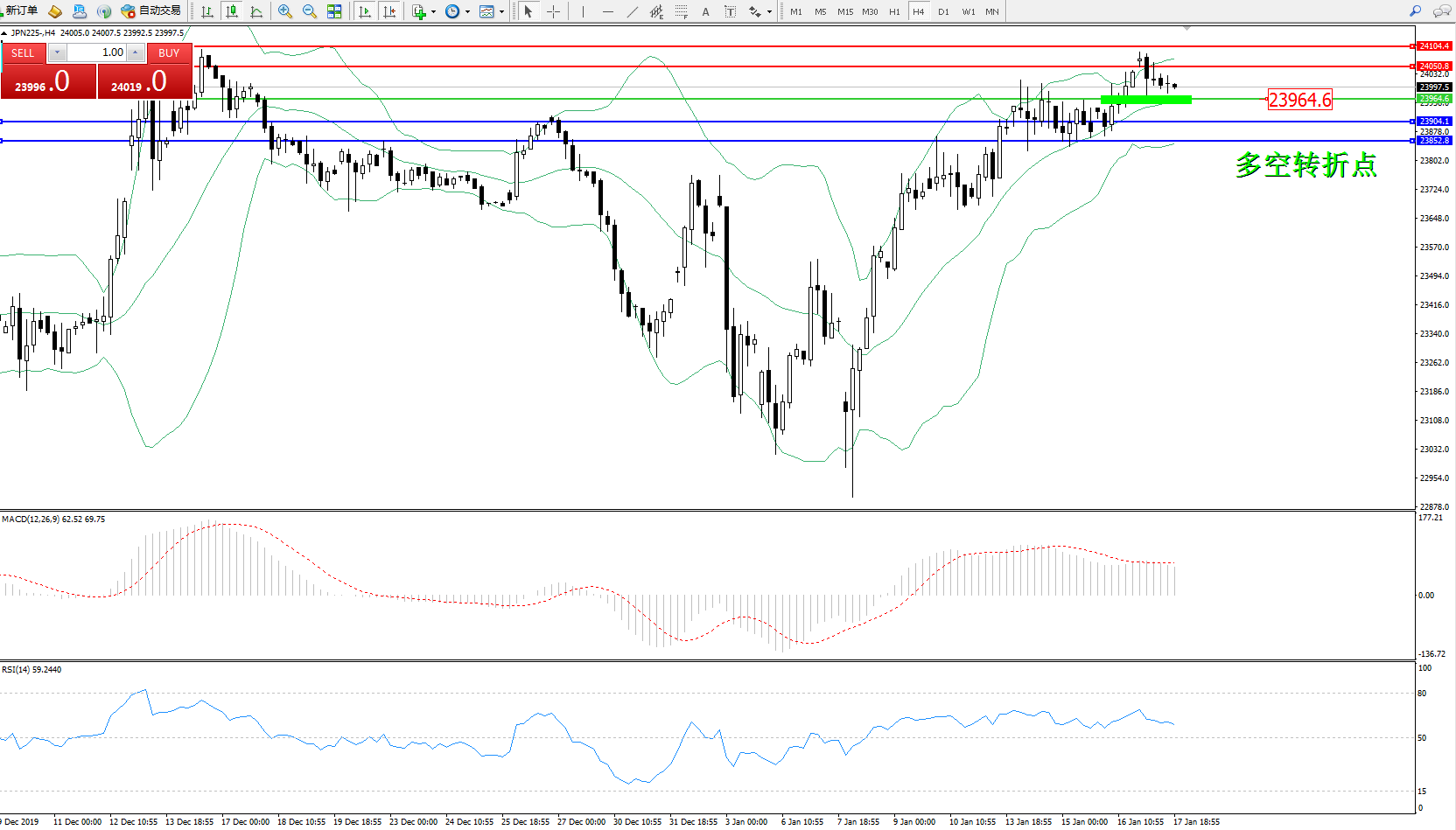 日经225指数1月17日(周五)收盘上涨111.87点,涨幅0.47%,报24045.00点。日本内阁办公室公布中期经济预期,日本的基本观点是,当前十年不会实现预算平衡,此前的基准观点并未排除2029财年实现基本平衡。日本央行将于下周一至二(20至21日)召开议息会议,外界普遍预期会议将维持货币政策不变,因为早前央行才上调经济预测。日本经济将继续温和扩张,全球经济增长放缓对内需产生的涟漪效应有限。