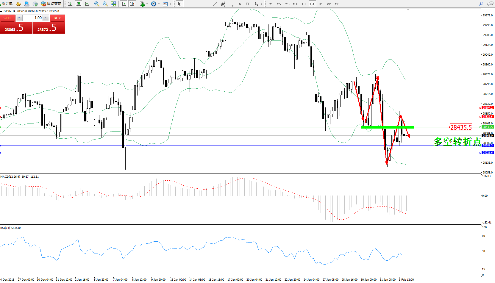 交易策略:28435下方看跌,目标28281、28221