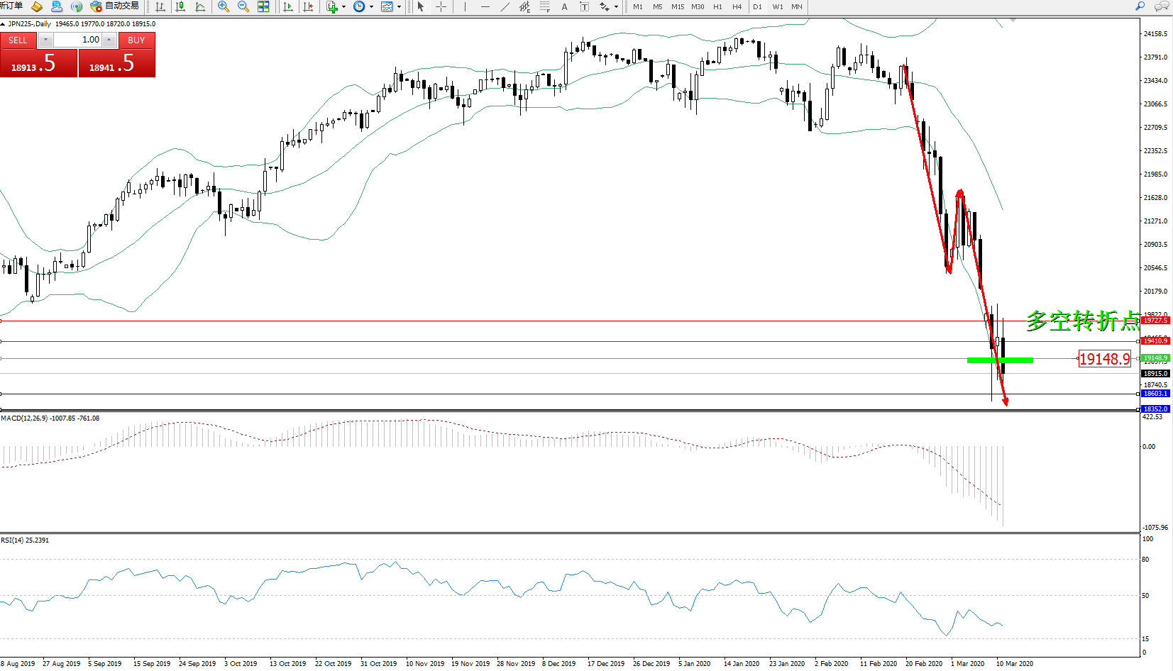 日经225指数3月11日(周三)收盘下跌446.62点,跌幅2.25%,报19420.50点。投资者等待着特朗普政府就计划针对公共卫生事件影响采取的刺激措施公布更多细节,这可能遭遇共和党的阻力,同时,疫情在全球范围内的扩散形势依旧严峻,日内风险偏好情绪有所回落,美债收益率大幅下跌,疫情在全球范围内的扩散形势依旧严峻,亚洲股市纷纷走低,日本政府10日召开卫生风险对策总部会议,敲定了防控卫生风险和支援维持就业等的第二轮紧急应对措施。第二轮的财政措施规模为4308亿日元(约合人民币285亿元),较第一轮的153亿日元大幅扩充。首相安倍晋三在会上表示:“必须尽全力优先确保劳动力雇用的维持和企业的继续经营。”