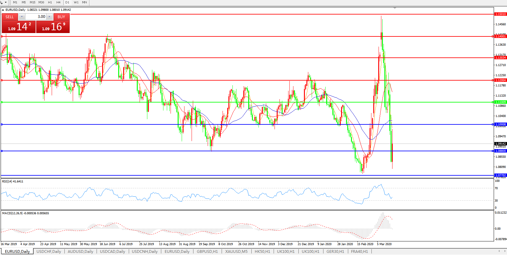 支撑位:1.1000 1.0880 1.0770